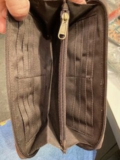cowhide with leather accents with full zipper for closure,loads of card spaces