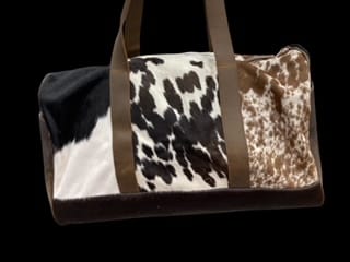 cowhide duffle bag 20″x12″ leather straps