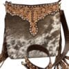 Tan and white hide front with tooling and lacing