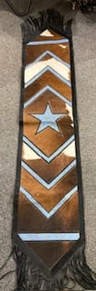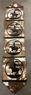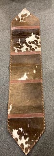 stunning cowhide tablerunner with leather back, will enhance any dining table.